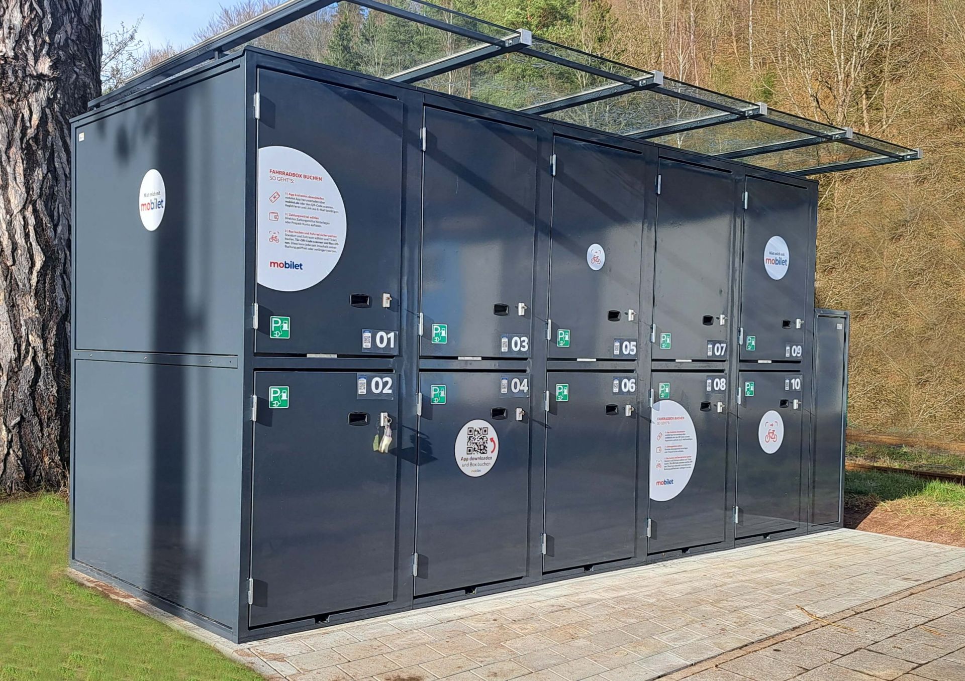 Durch die Aufstockung der Fahrradbox auf 2 Ebenen wird der Stellplatzbedarf optimiert!