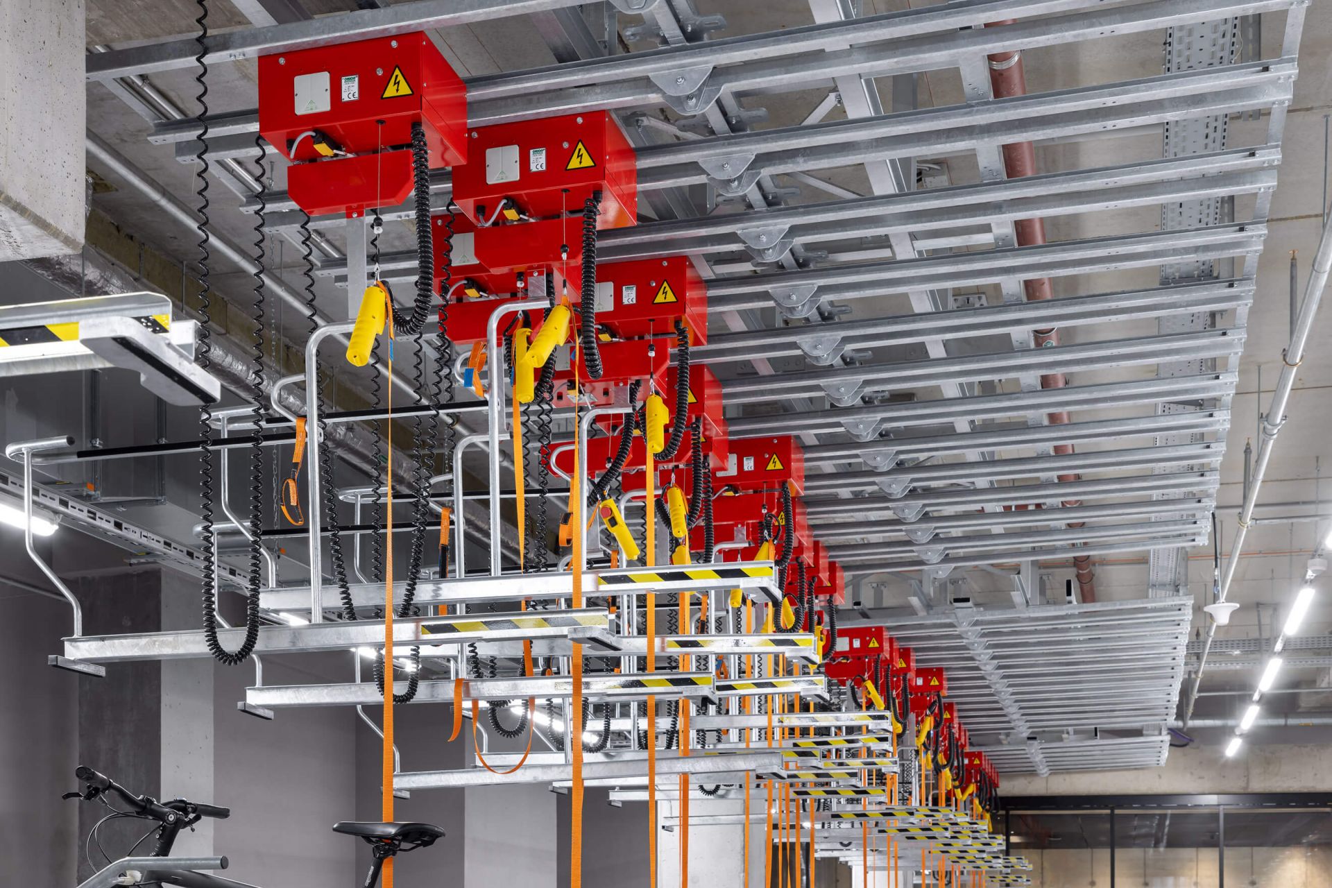 Der Fahrradständer „DreiPlus“ ist ebenso problemlos als eigenständiges Fahrradparksystem betriebsfähig und kann auch direkt an vorhandenen Geschossdecken - also unabhängig von Fahrradständern des Typs Doppelstockparkern - installiert werden.