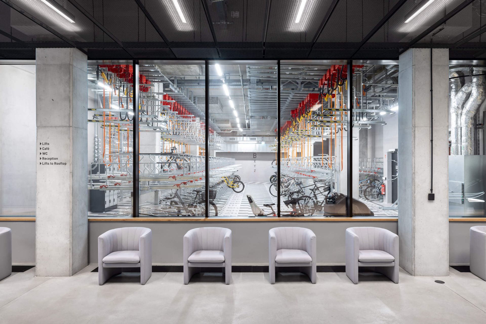 In Kombination mit Fahrradständer des Typs Doppelstockparker kann das ORION-Fahrradparksystem „DreiPlus“ in das vorhandene Traggerüst integriert werden.