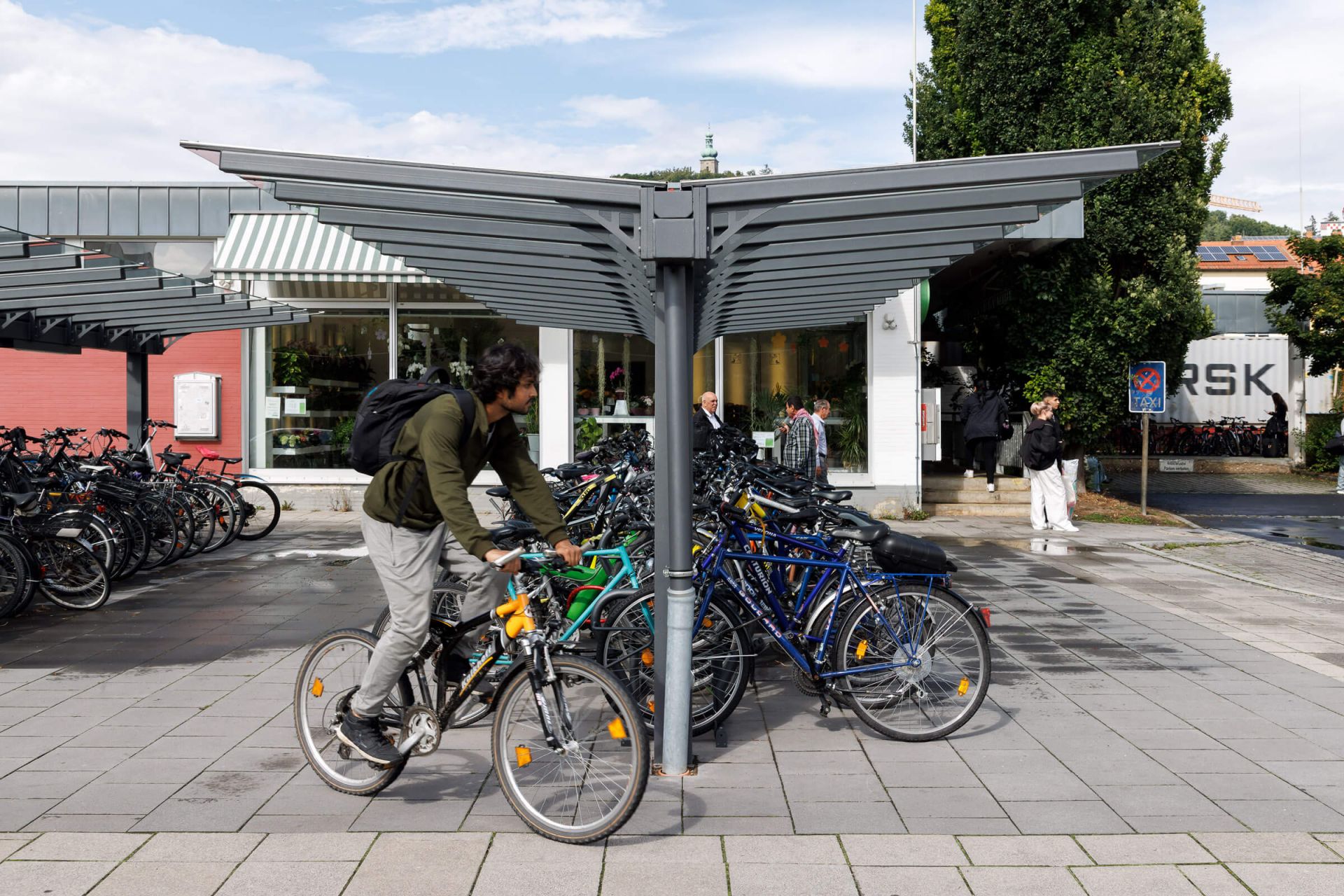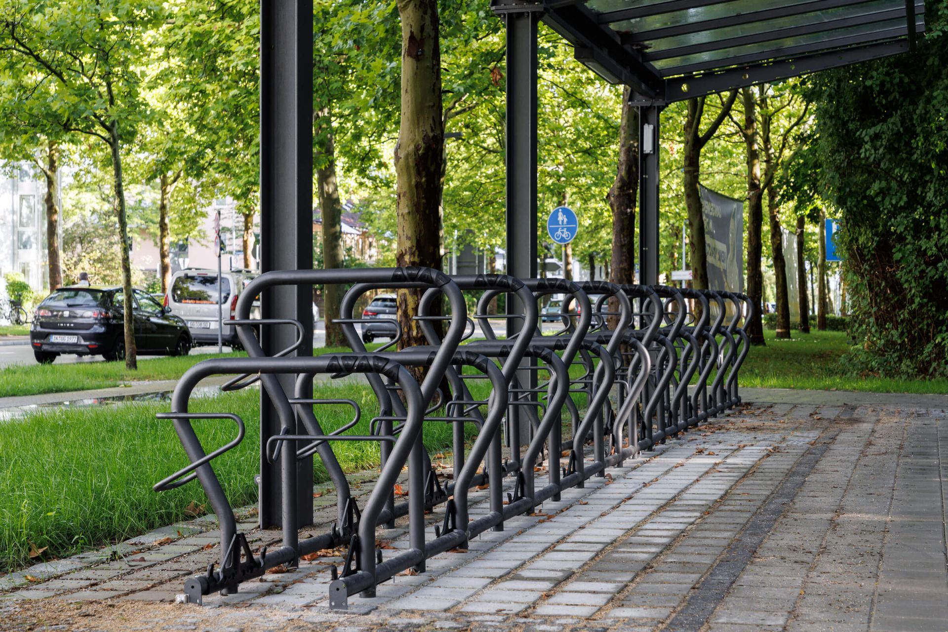 Stabilität und Komfort vereint: Dank der innovativen Hocheinstellung ist das Einparken besonders benutzerfreundlich. Der untere Bügel mit Fokussiereffekt sorgt dafür, dass das Fahrrad stets sicher und klemmungsfrei am robusten Anlehnbügel positioniert ist. Das gewährleistet nicht nur eine stabile Abstellung, sondern minimiert auch das Risiko von Beschädigungen am Fahrrad.