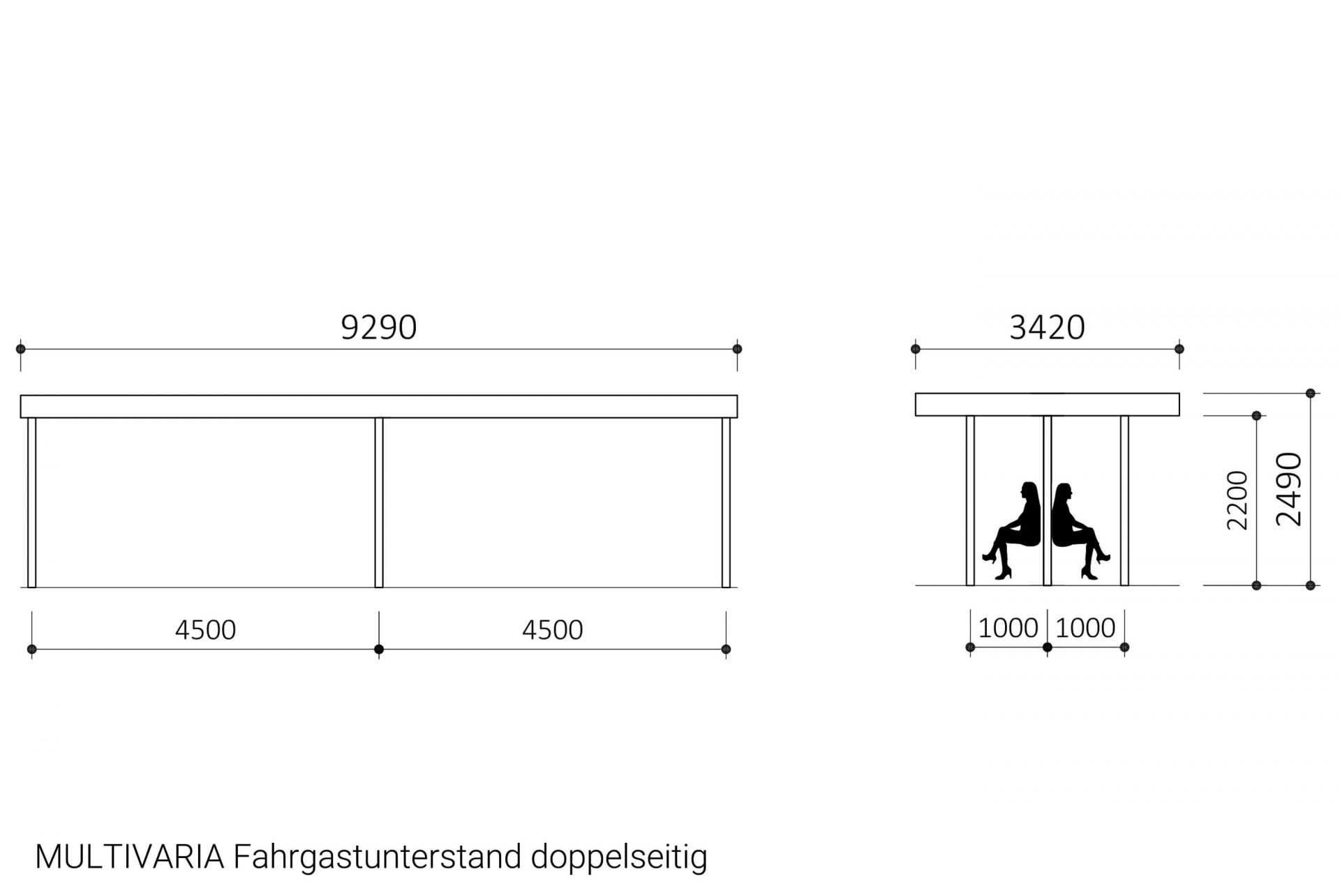 Der doppelseitige MULTIVARIA Fahrgastunterstand bietet maximale Zugänglichkeit und ist optimal für stark frequentierte Haltestellen oder Mittelbahnsteige geeignet. Fahrgäste können die Wartehalle von beiden Seiten betreten, was den Personenfluss deutlich verbessert und Wartebereiche entzerrt. Diese Offenheit sorgt für mehr Flexibilität bei wechselnden Fahrgastströmen und erhöht die Aufenthaltsqualität spürbar. Gleichzeitig bieten Verglasungen und Dachkonstruktion zuverlässigen Schutz vor Witterung. Die doppelseitige Ausführung eignet sich besonders für urbane Knotenpunkte, Umsteigesituationen und zentrale Haltestellen, an denen Komfort, Übersicht und Bewegungsfreiheit entscheidend sind.