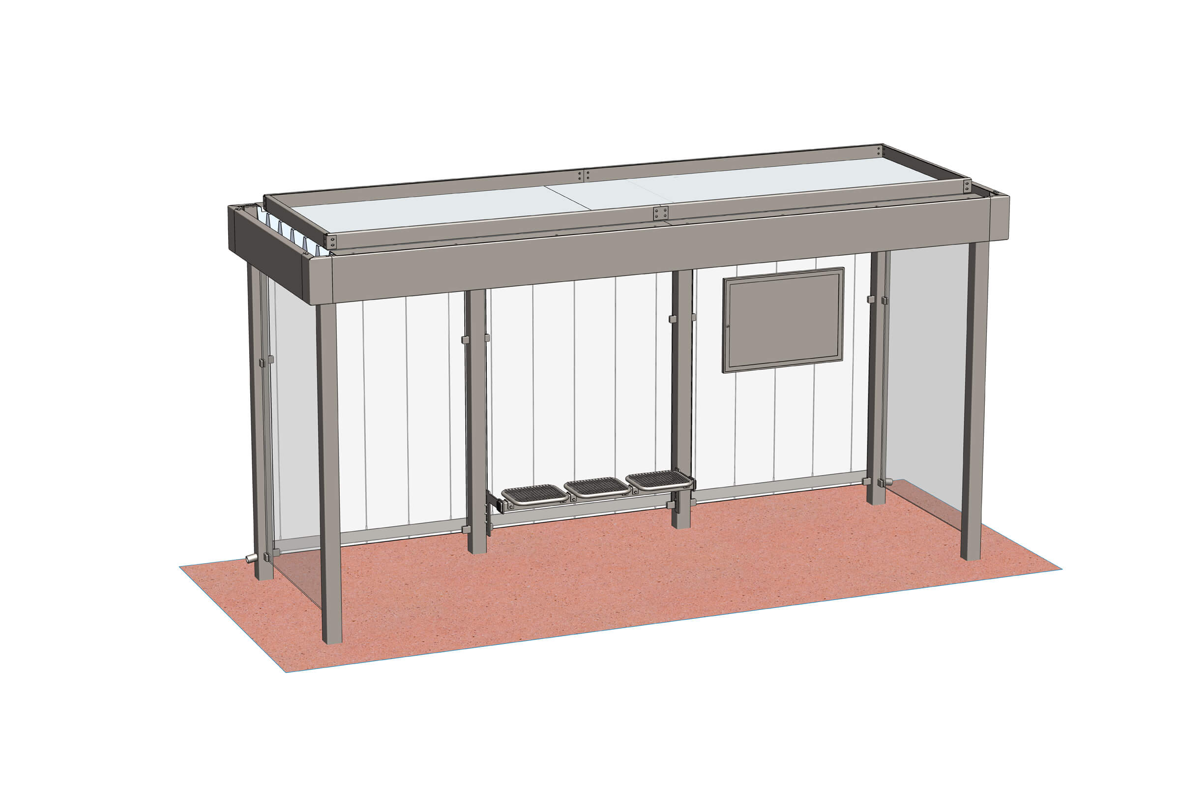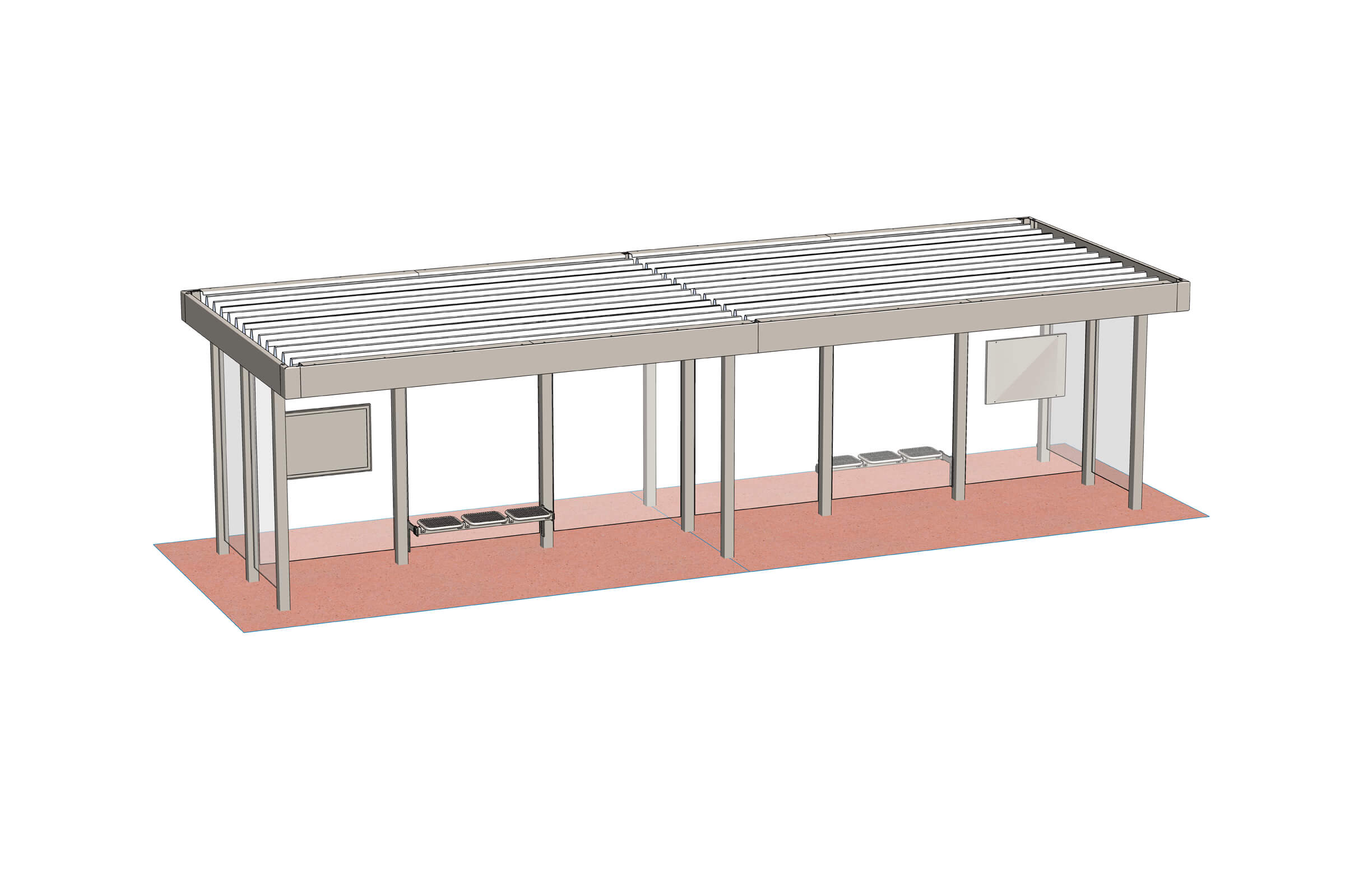 Flexibler Fahrgastunterstand mit Flachdach. Modular erweiterbar, normgerecht konstruiert.