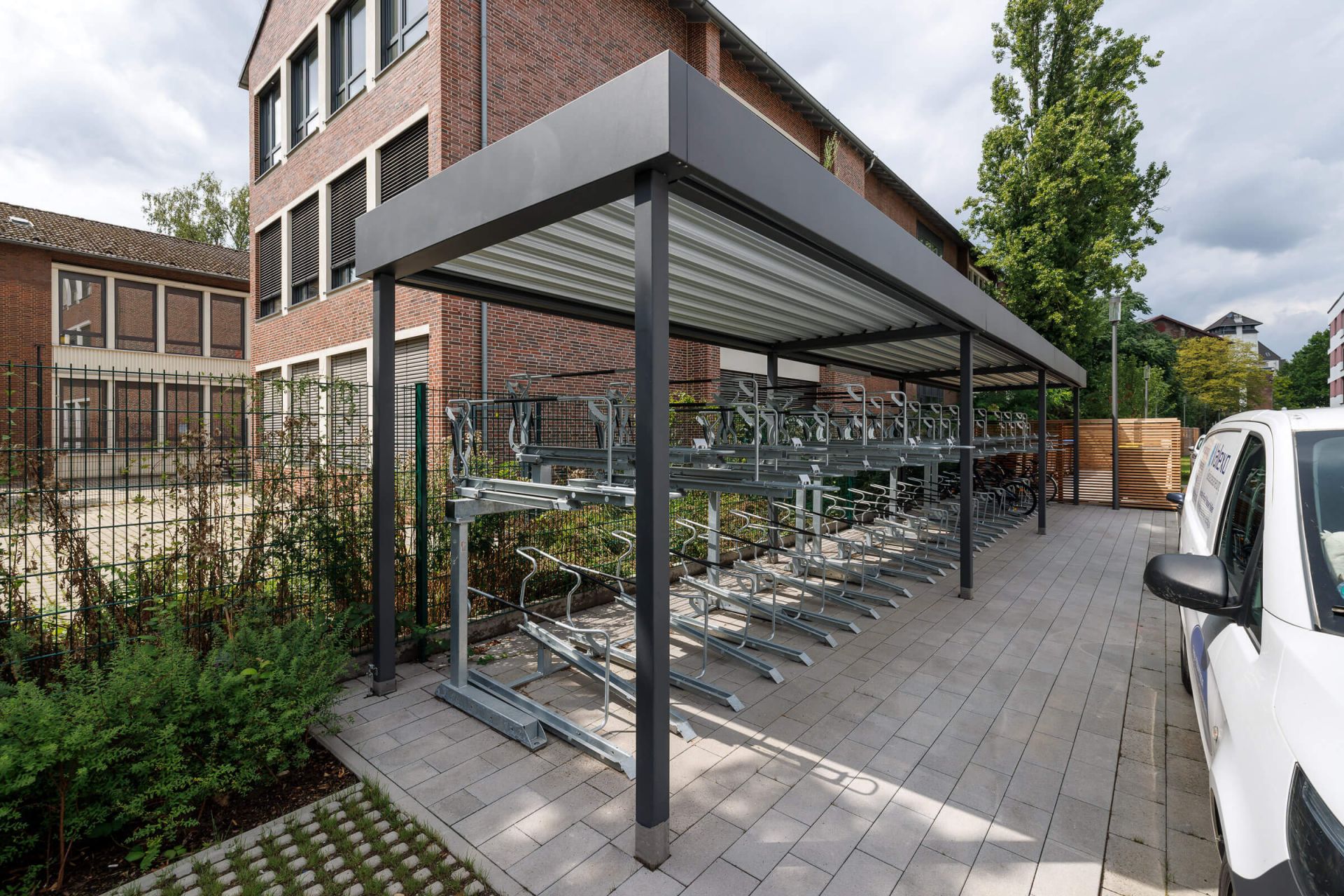 Doppelseitiger Fahrradunterstand und maximale Stellplatznutzung