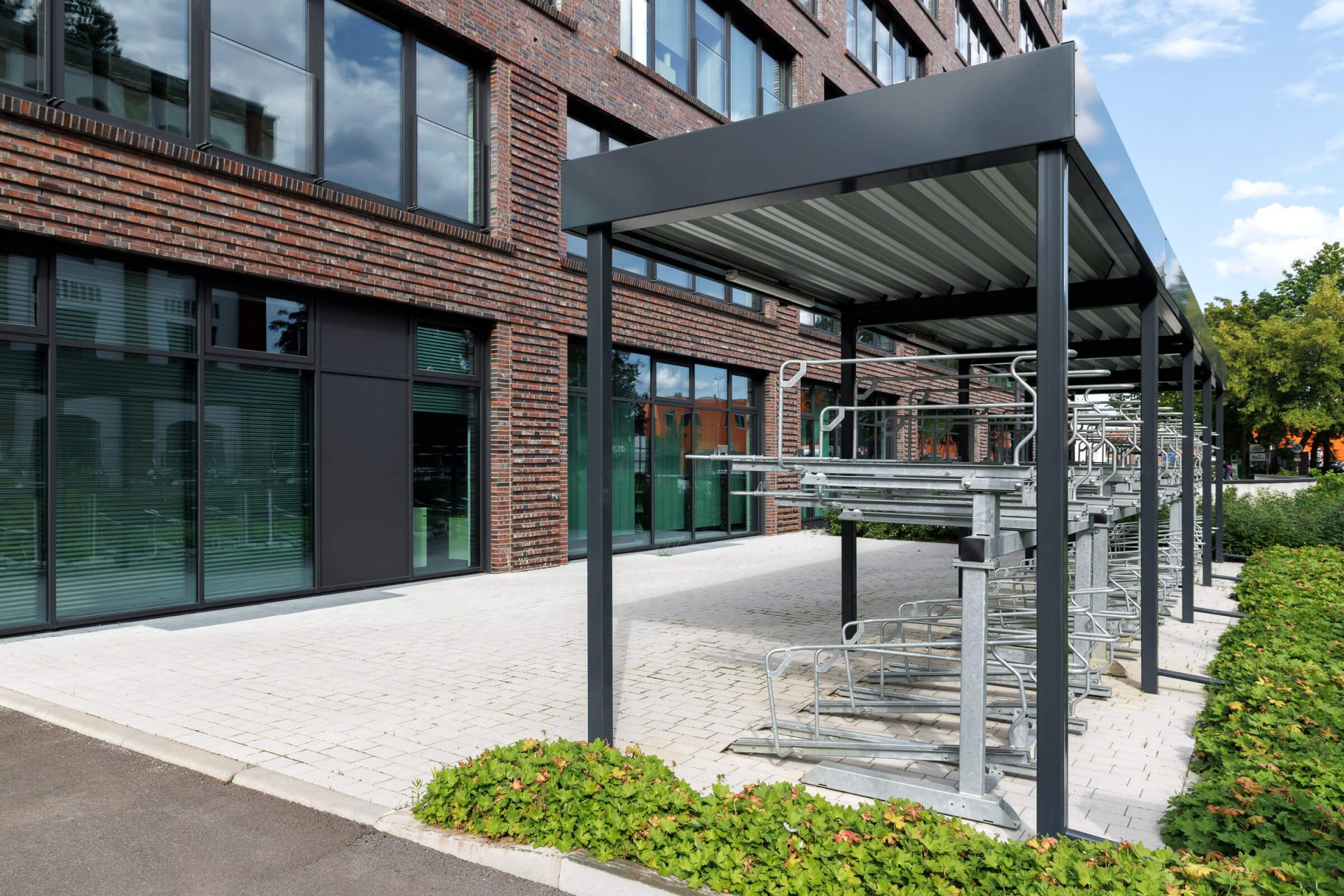 MULTIVARIA Fahrradunterstand – modulare Flachdachlösung in moderner Stadtplanung