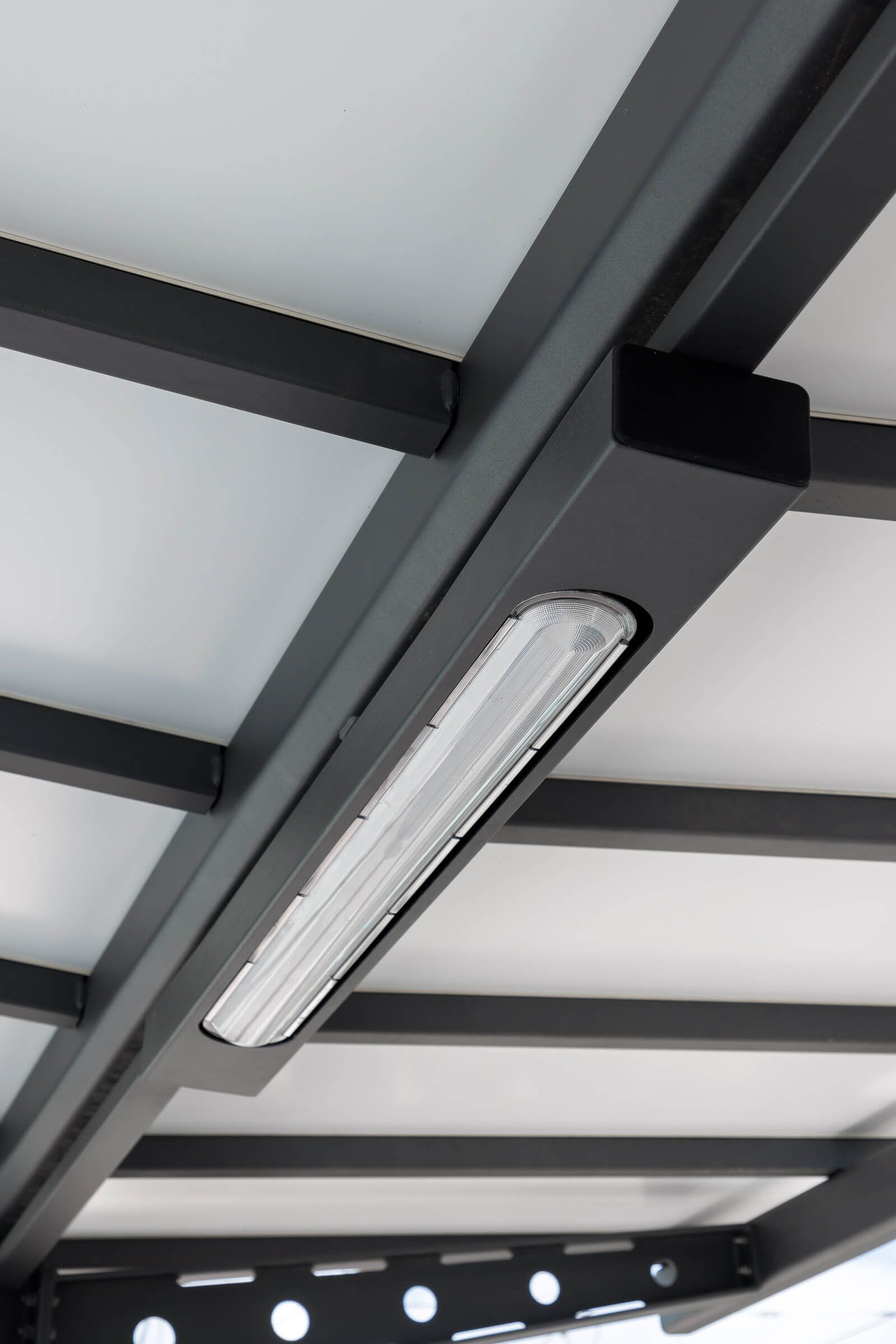 Sofern Sie unseren Leistungsumfang um Bauteile zur Kabelführung erweitern wollen, bieten wir Ihnen diese Position auf Anfrage gerne an! Da sich die Ausführung je nach Überdachungskonstruktion und deren spezieller Gestaltung ändern kann, können wir nur objektspezifisch entsprechende Lösungen erarbeiten.